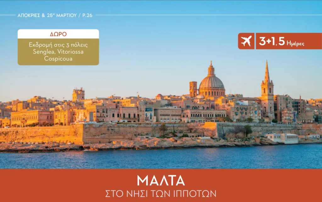 Ημερομηνίες: 20/02 – 23/02 | 3+1 ημέρες 5ήμερο Ταξίδι στη Μάλτα: Το Νησί των Ιπποτών Oι περίοδοι αυτοί αποτελούν την ιδανικότερη περίοδο για να ταξιδέψετε στο […]